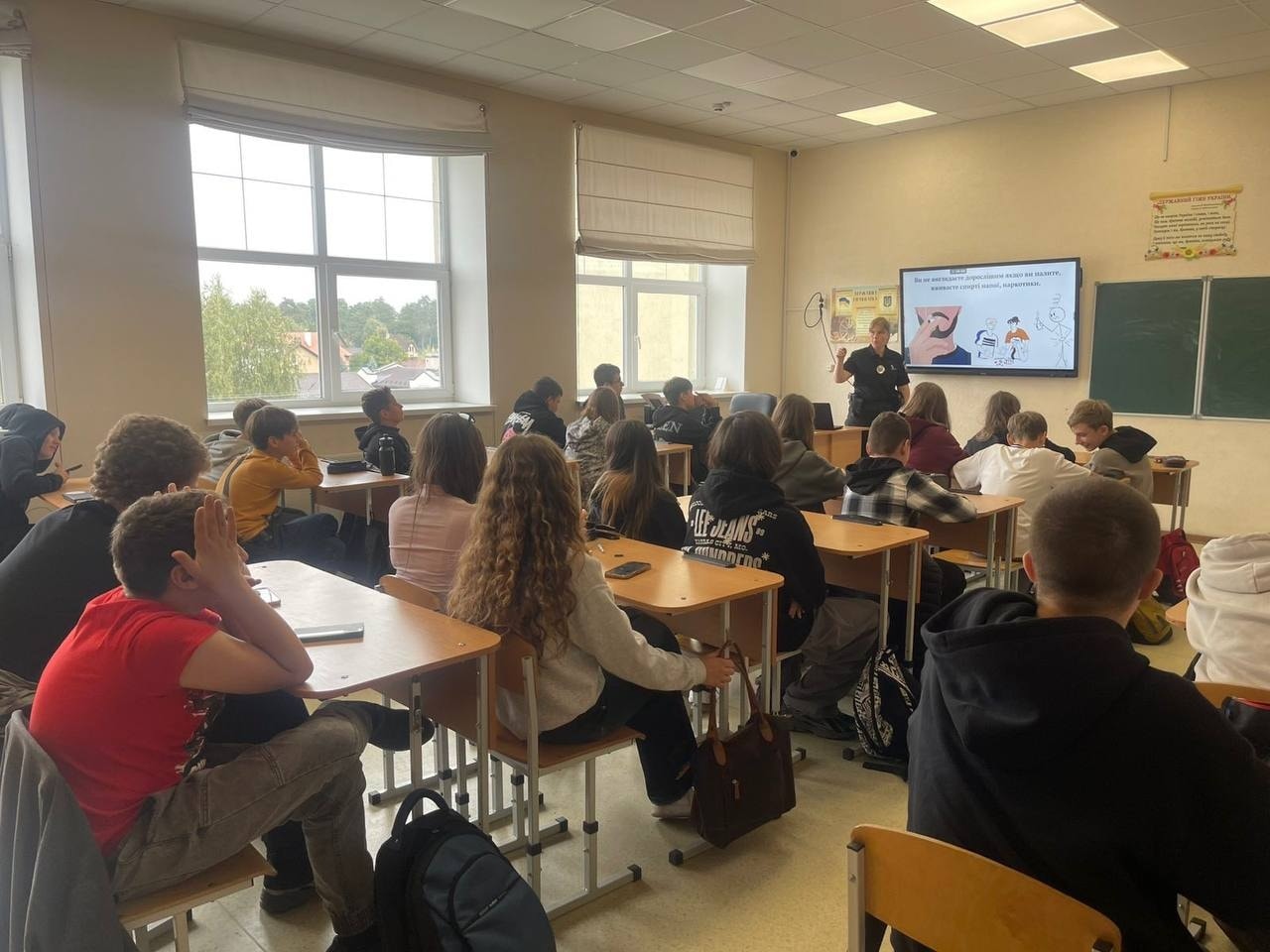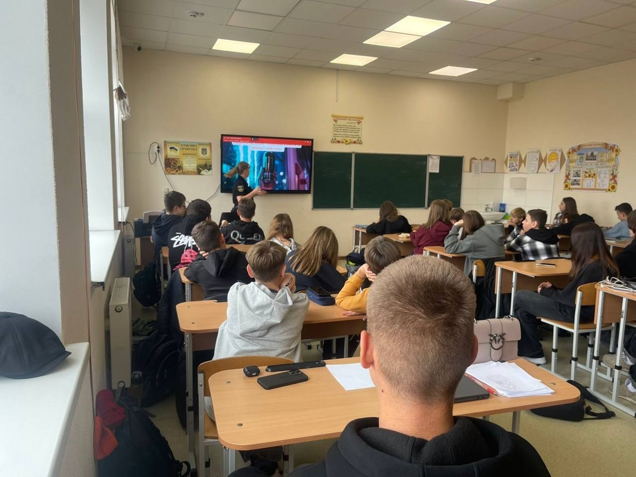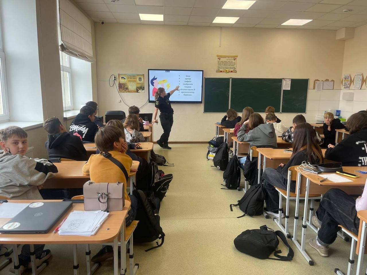 Інспектор у доступній формі розповіла про основні принципи поведінки, роль учнів у створенні безпечного освітнього середовища та відповіла на численні запитання восьмикласників.