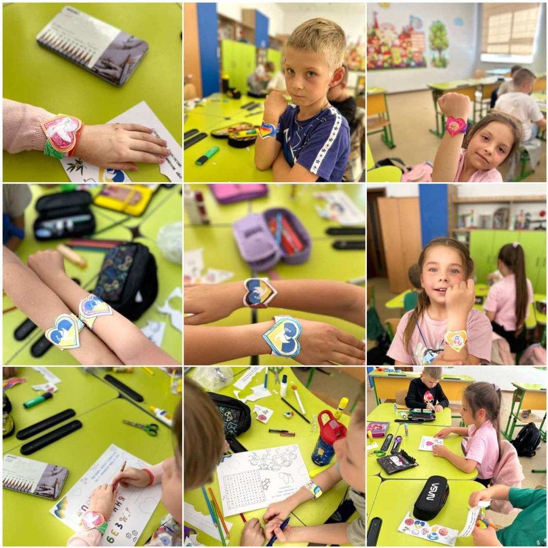 Далі створили власні браслетики миру — хтось малював, хтось вирізав символи, інші вигадували свої мирні гасла. Кожен зробив особливу прикрасу з великим сенсом!