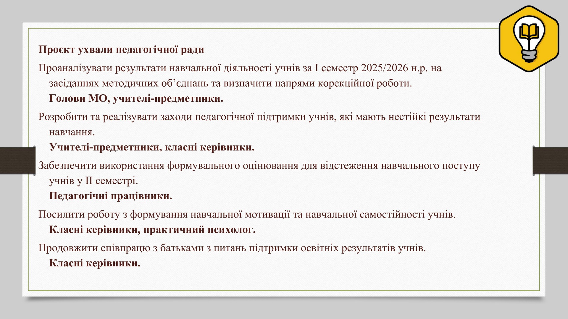 Аналіз результатів навчальної діяльності окреслив такі пріоритети: