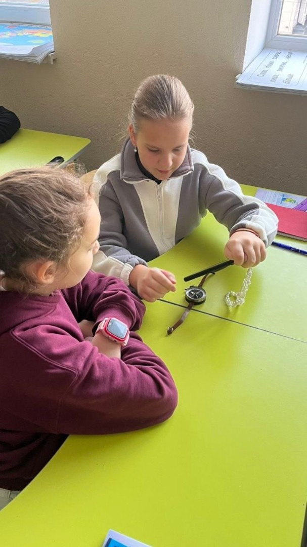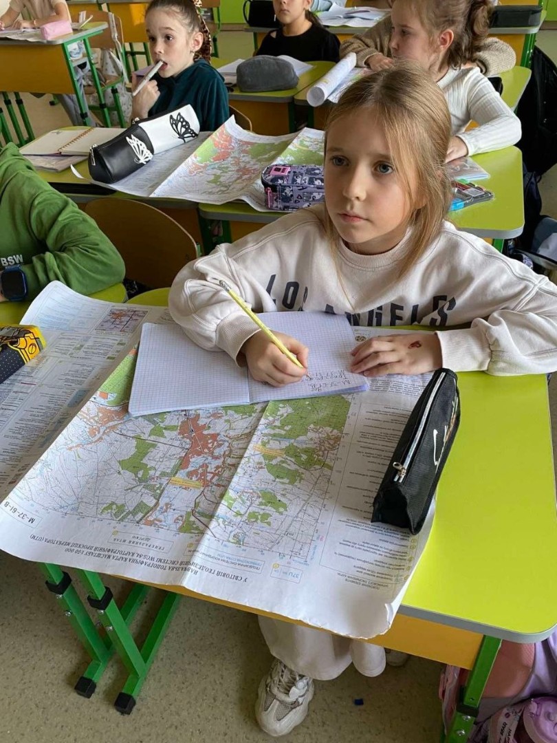 Дітки працювали із справжніми план-картами військових ЗСУ, кожен визначав напрям руху та азимут за компасом.