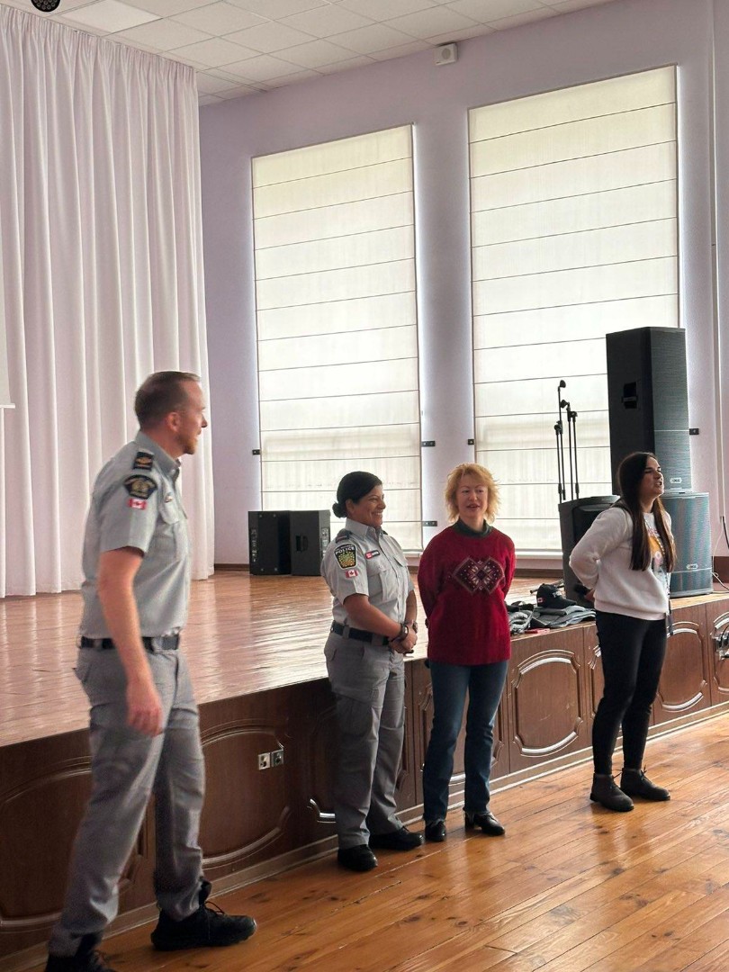 Поліцейські з Канади розповіли учням про свою країну, про особливості служби та поділилися цікавим професійним досвідом. Діти активно ставили запитання: цікавилися, як працює поліція в Канаді, у чому подібності та відмінності з українською, якими є труднощі та переваги служби.