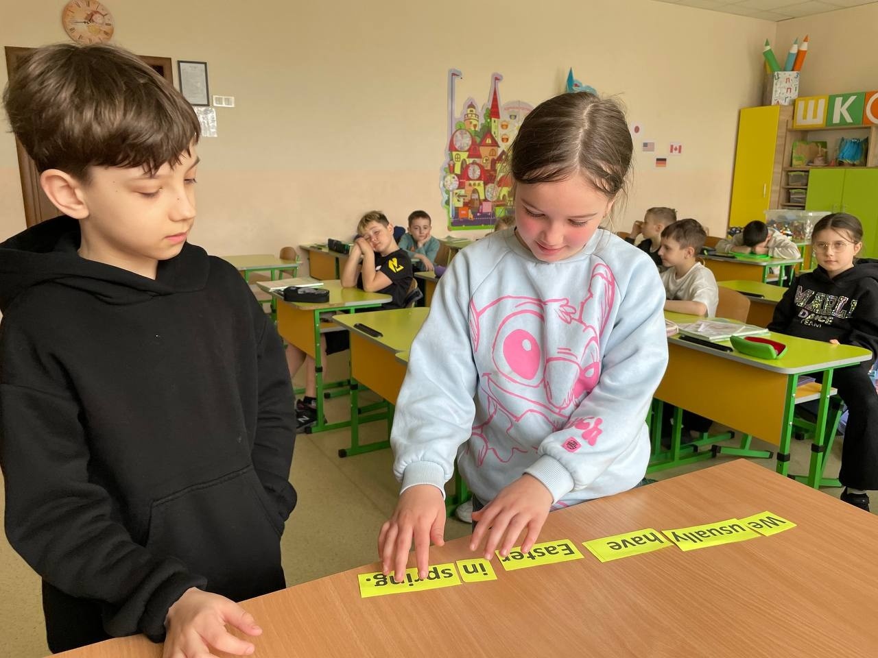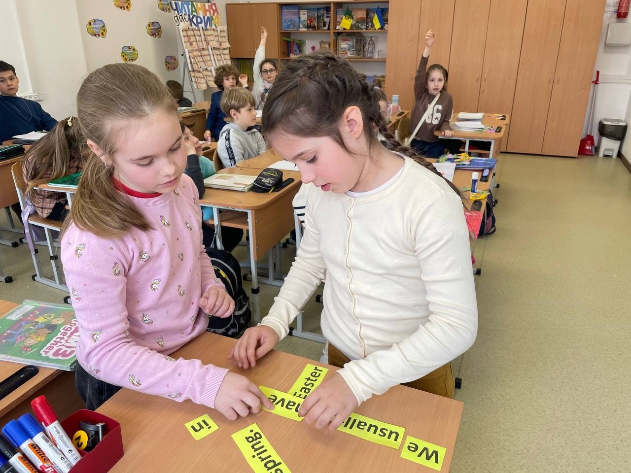 Під час занять діти поринули в атмосферу Великодня англійською мовою: вивчали нові слова, пов’язані зі святом, складали власні речення та активно використовували лексику в мовленні.