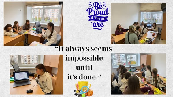 Під час уроку учні презентували розповіді про спортсменів, які є для них прикладом наполегливості, сили волі та досягнення мети. Діти активно працювали в групах, обговорювали значення спорту в житті людини та вдосконалювали свої навички англійського мовлення. Головне пам'ятаємо , що без зусиль не буде результату- “No pain, no gain.”