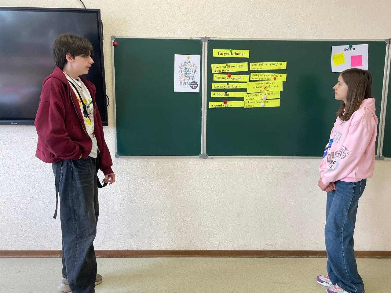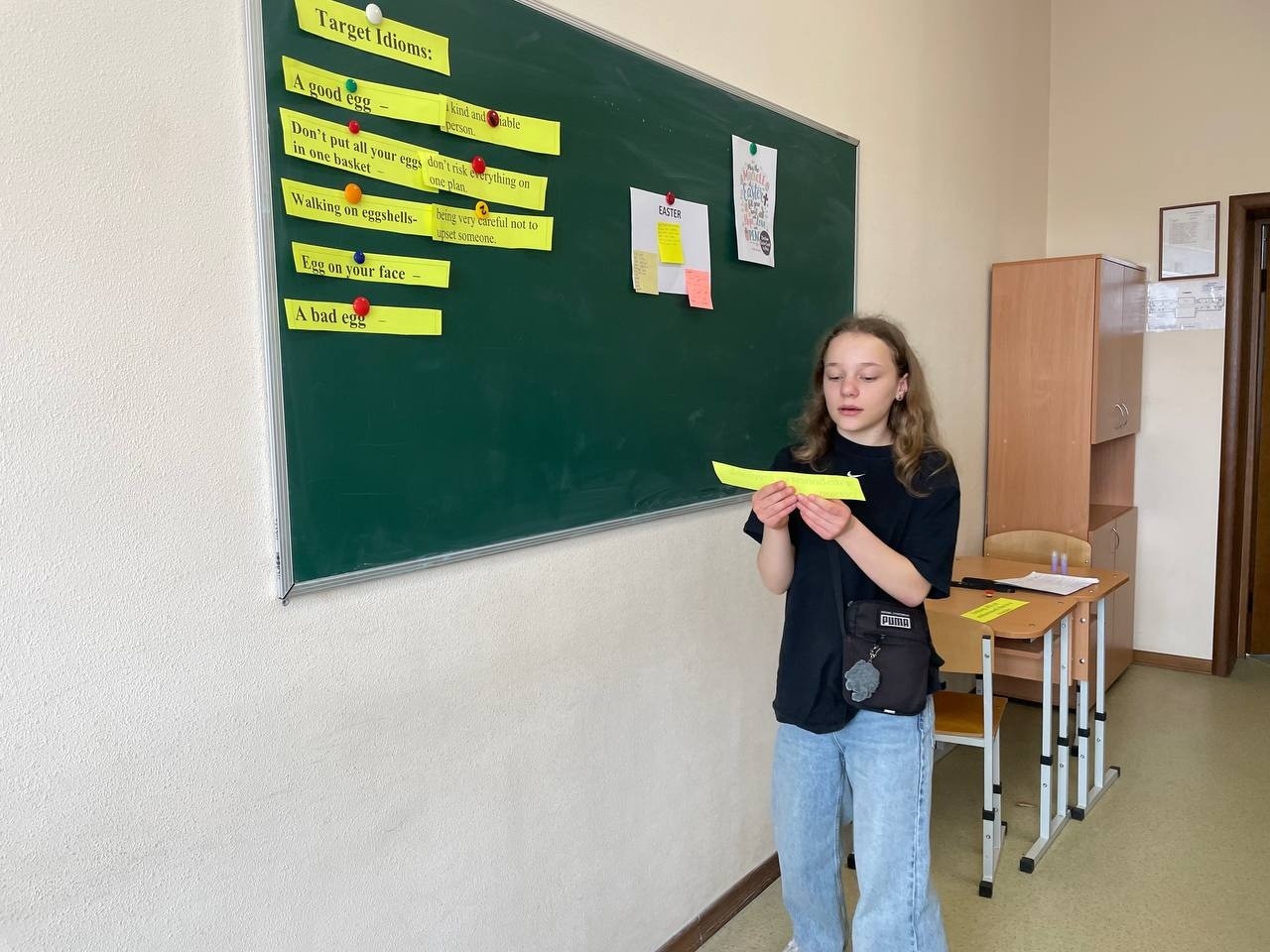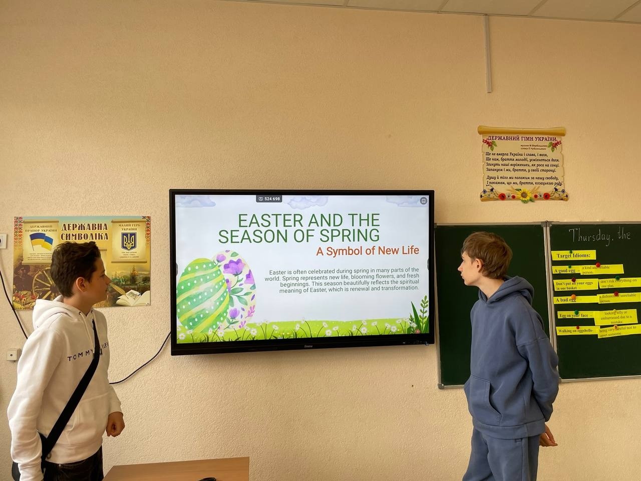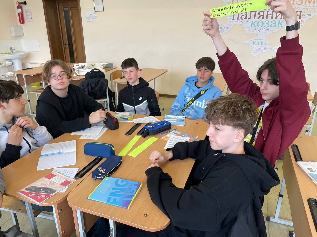 Учні ознайомилися з традиціями святкування Великодня в різних країнах світу, дізналися цікаві ідіоми, пов’язані зі святом, розвивали навички усного мовлення та активно працювали в командах.