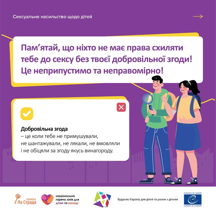 18 листопада – Європейський день захисту дітей від сексуальної експлуатації та сексуального насильства