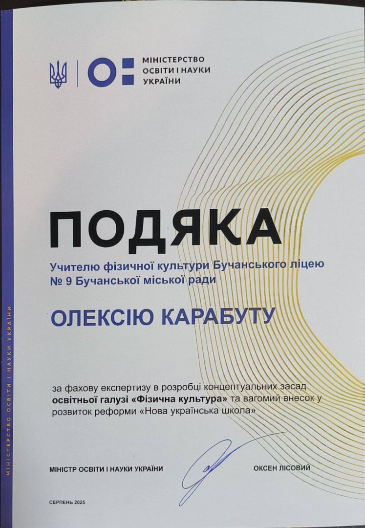 Олексій Карабут був відзначений Подякою Міністерства освіти і науки України.