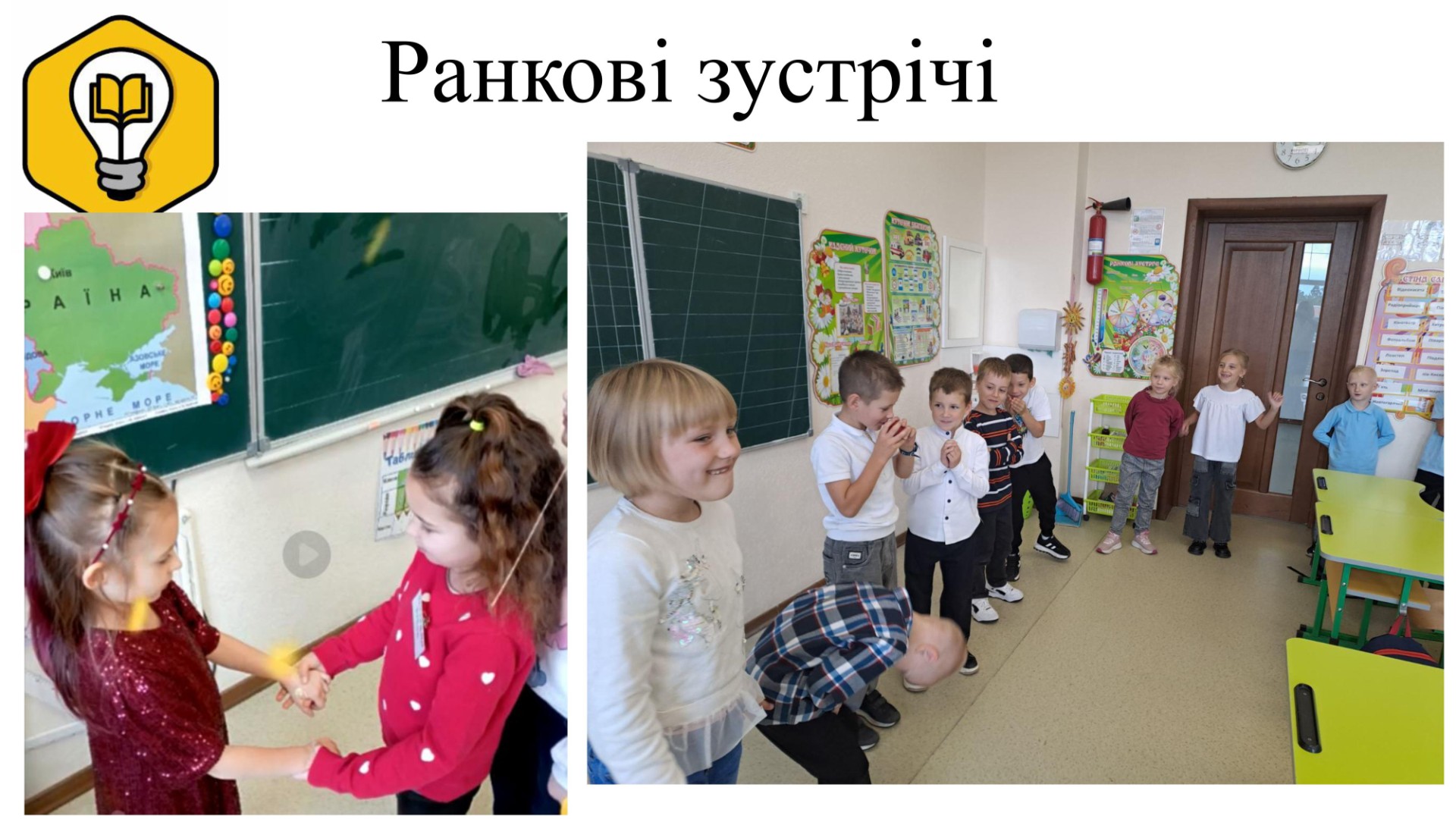 Всі педагоги початкових класів володіють методикою проведення ранкових зустрічей, здійснюють інтегрований підхід до використання навчального матеріалу у межах теми, вчать дітей працювати в парах, групах вільно спілкуватися.