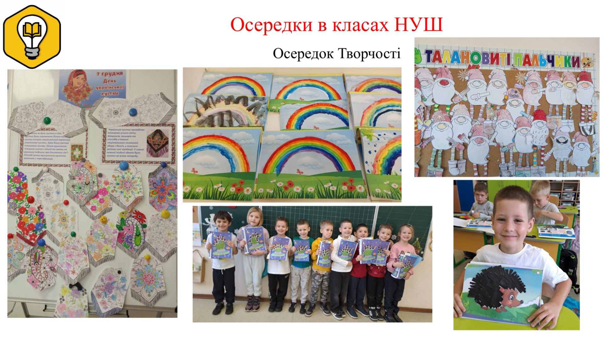 «Осередок творчості» - це та частинка класу, де учні із задоволенням вивішують свої роботи.