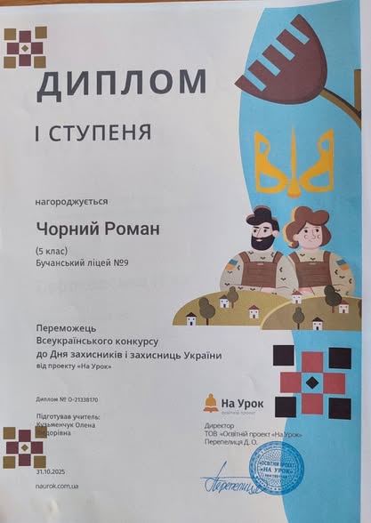 Учні 6-х класів взяли участь у всеукраїнському конкурсі до Дня захисників і захисниць України. Та були нагороджені дипломами
