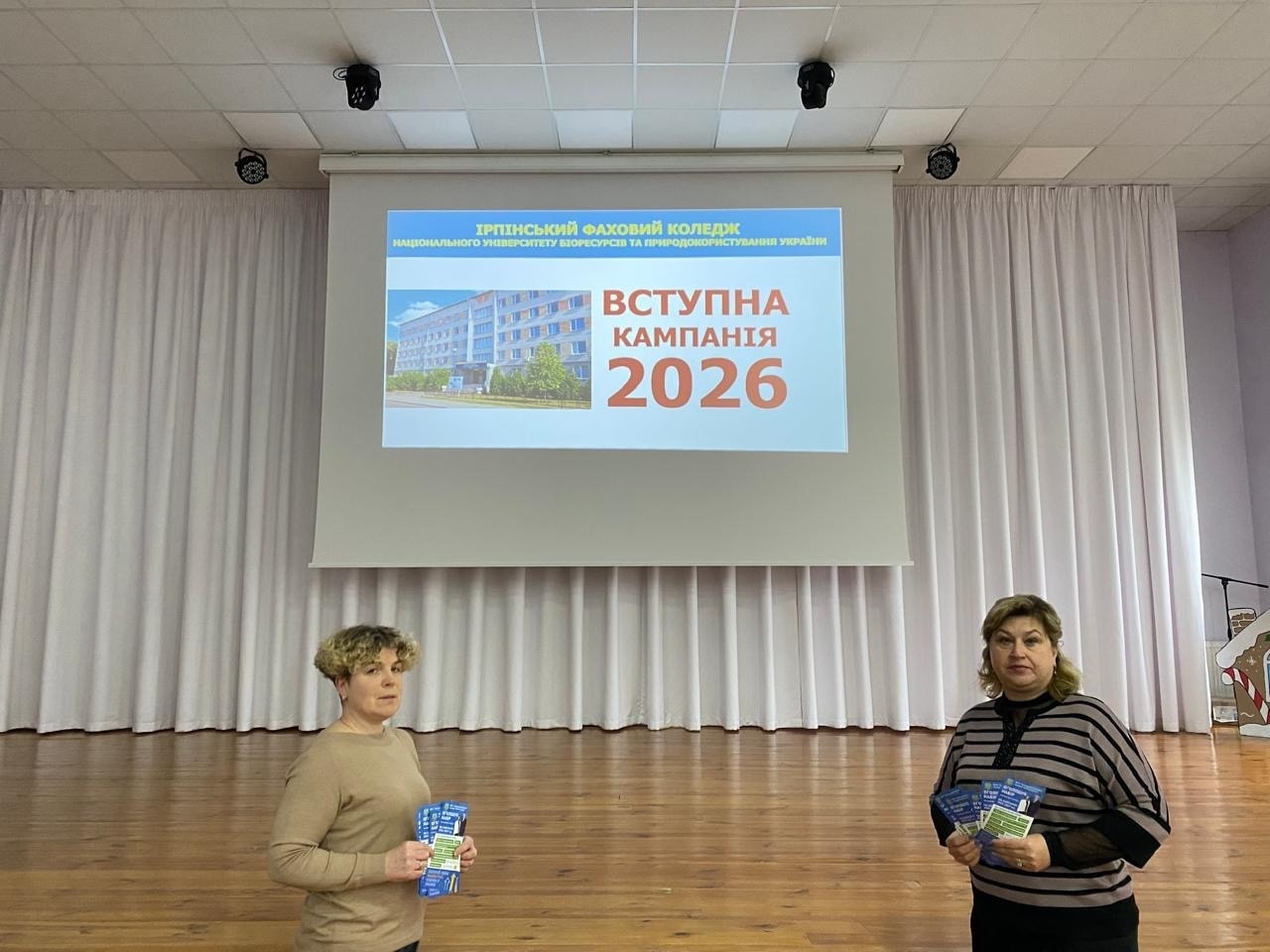 Педагогині Наталія Лісовська та Лариса Гурська розповіли учням про можливості Ірпінського фахового коледжу: широкий вибір спеціальностей, якісну практичну підготовку та сприятливі умови для розвитку.