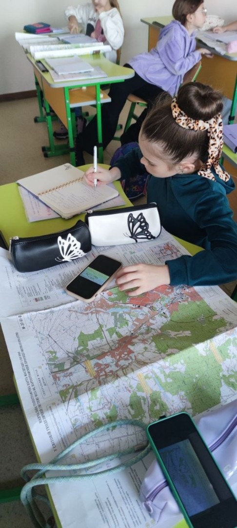 Дітки працювали із справжніми план-картами військових ЗСУ, кожен визначав напрям руху та азимут за компасом.